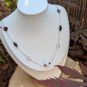 Collier en argent, perle, nacre, spinelle