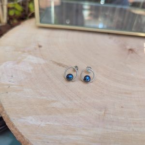 Puces en argent et perles bleues