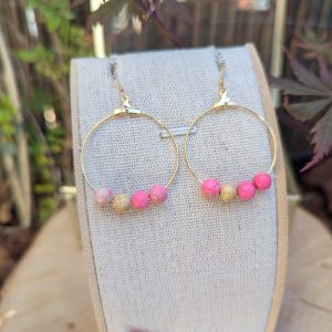 Creoles en goldfilled et pierre de lune rose