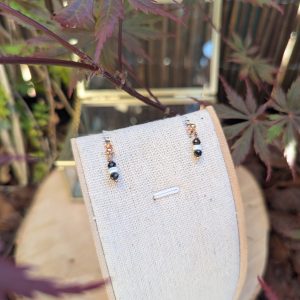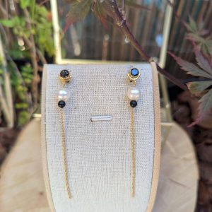Boucles en plaqué or, zircon noir et perles
