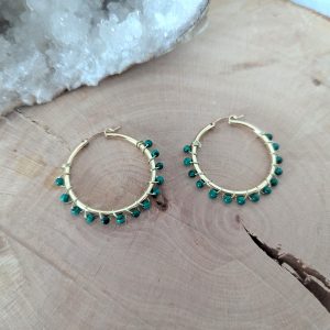 Créoles en goldfilled et malachite