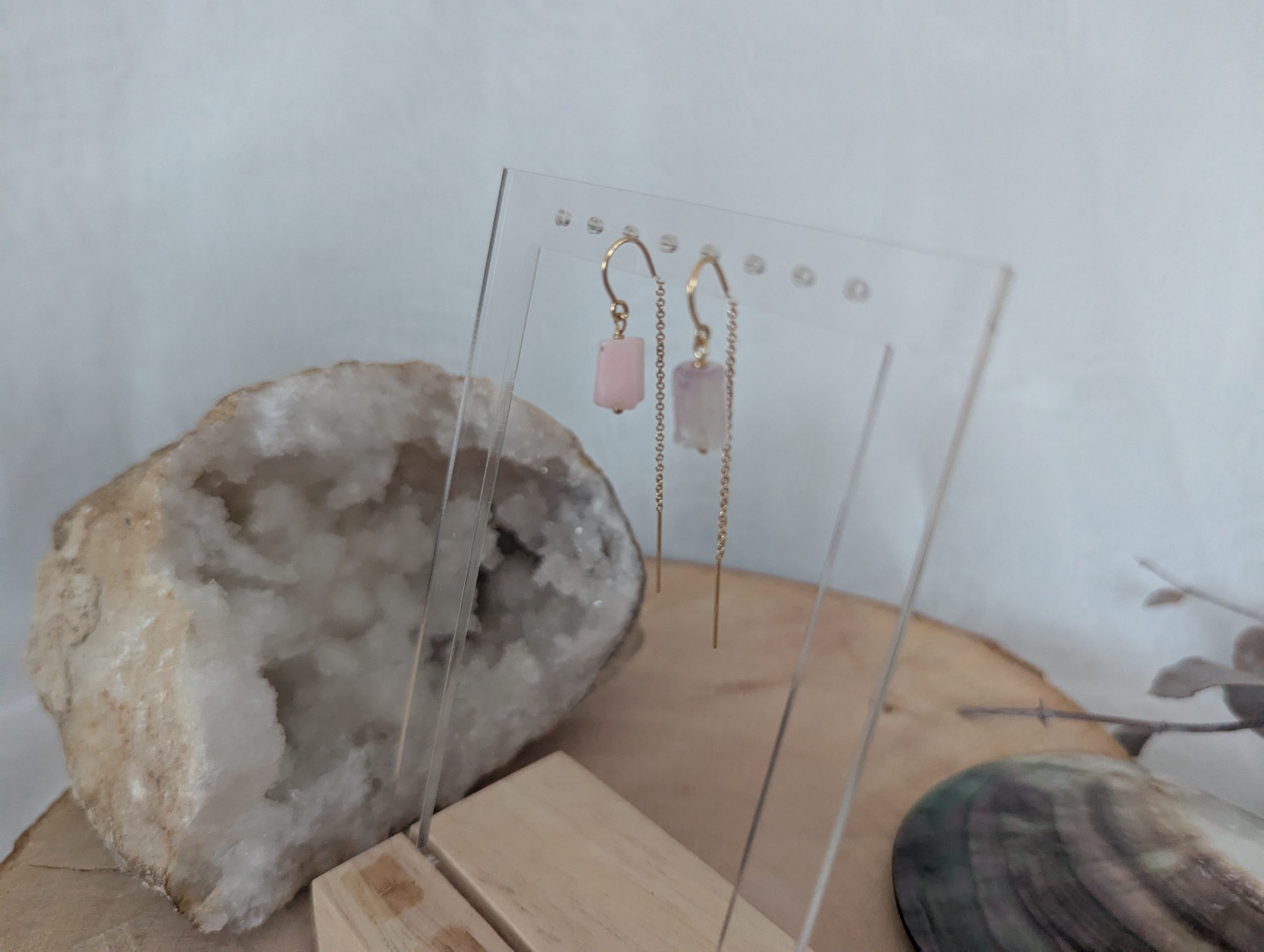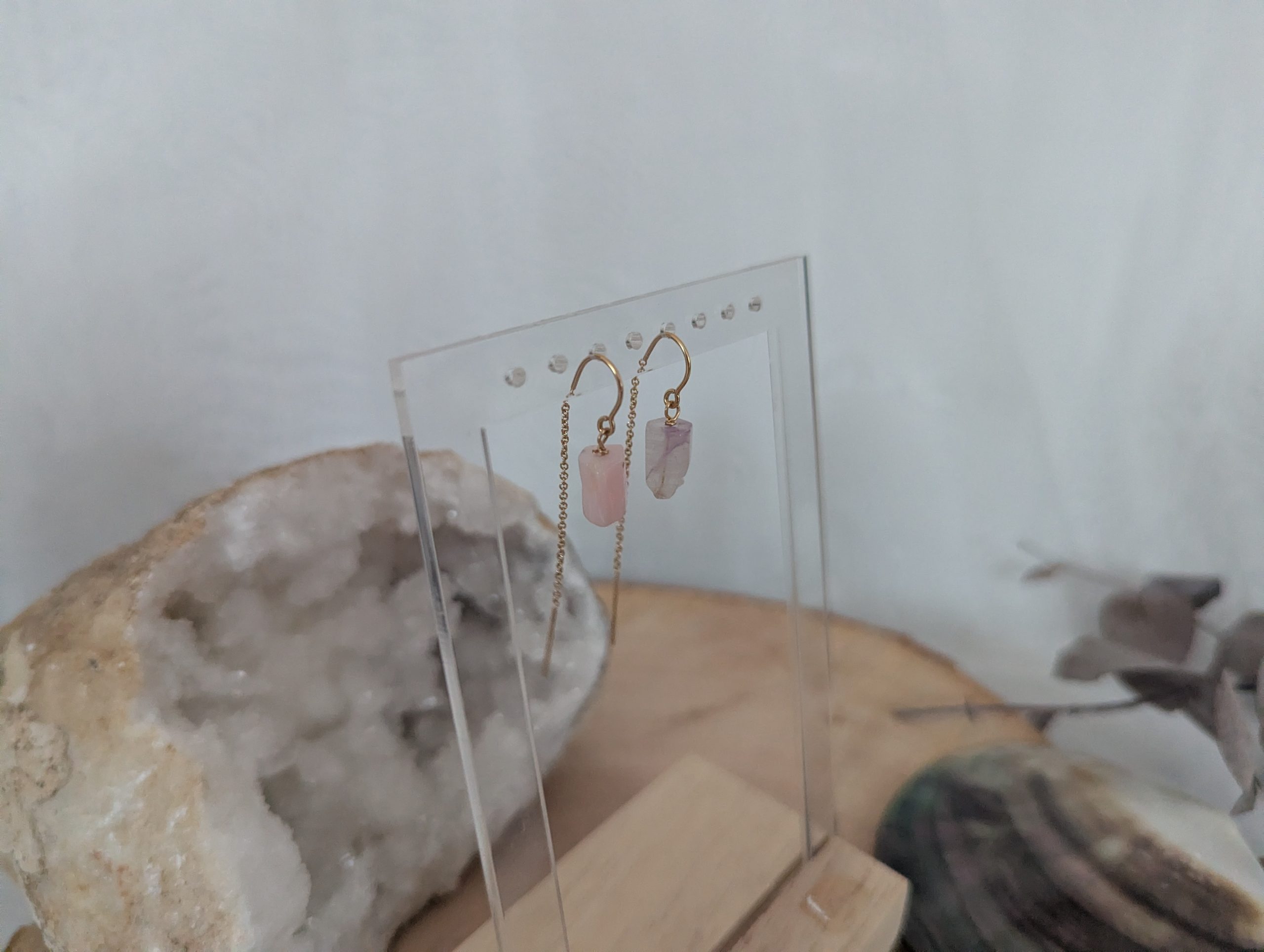 Description à venir Crochets d’oreilles asymétriques en goldfilled or 14K Une boucle en quartz rose et une en améthyste.