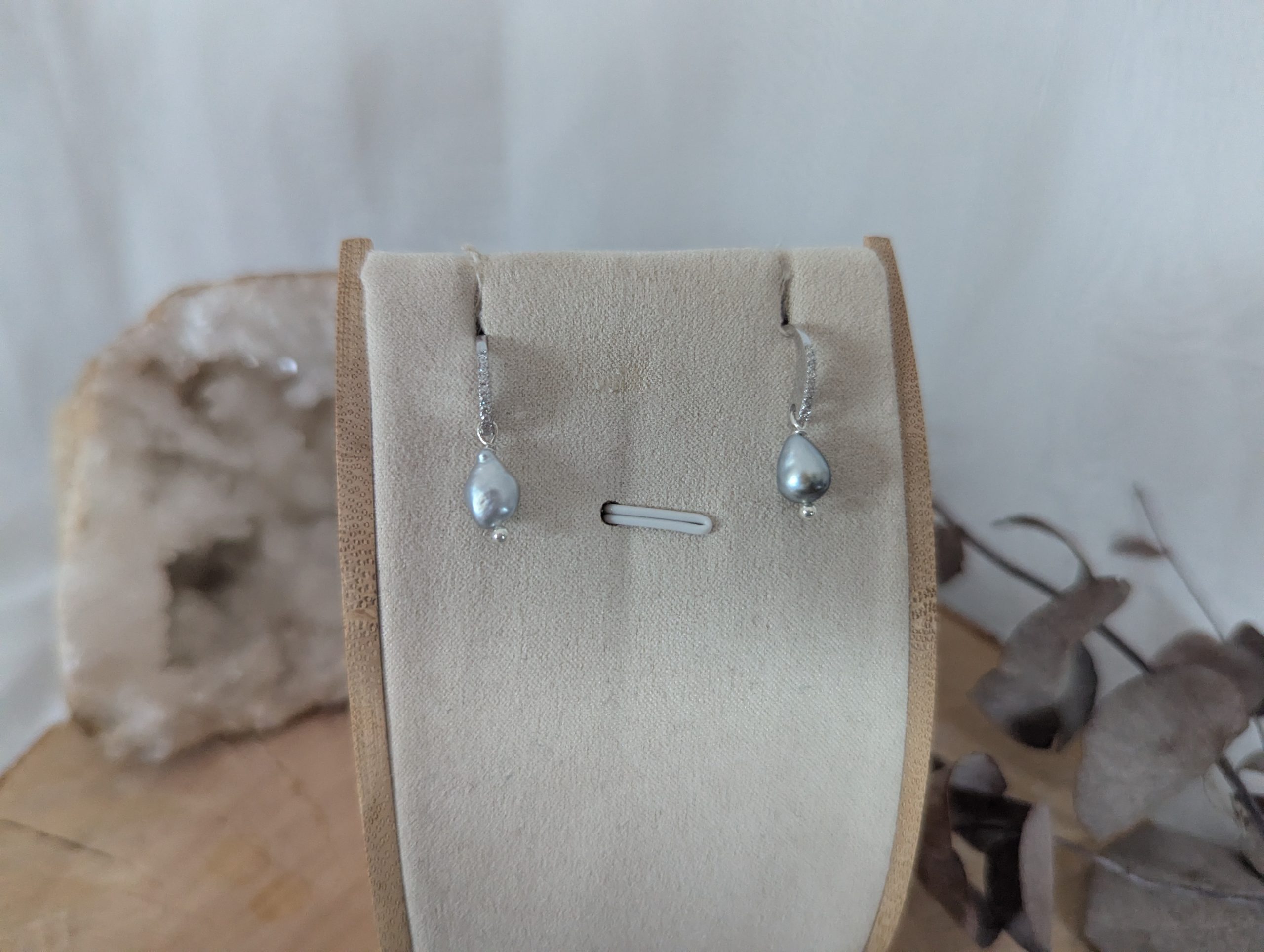 Description à venir Crochets en argent 925/1000e Zircons Keshis de Tahiti gris / bleu