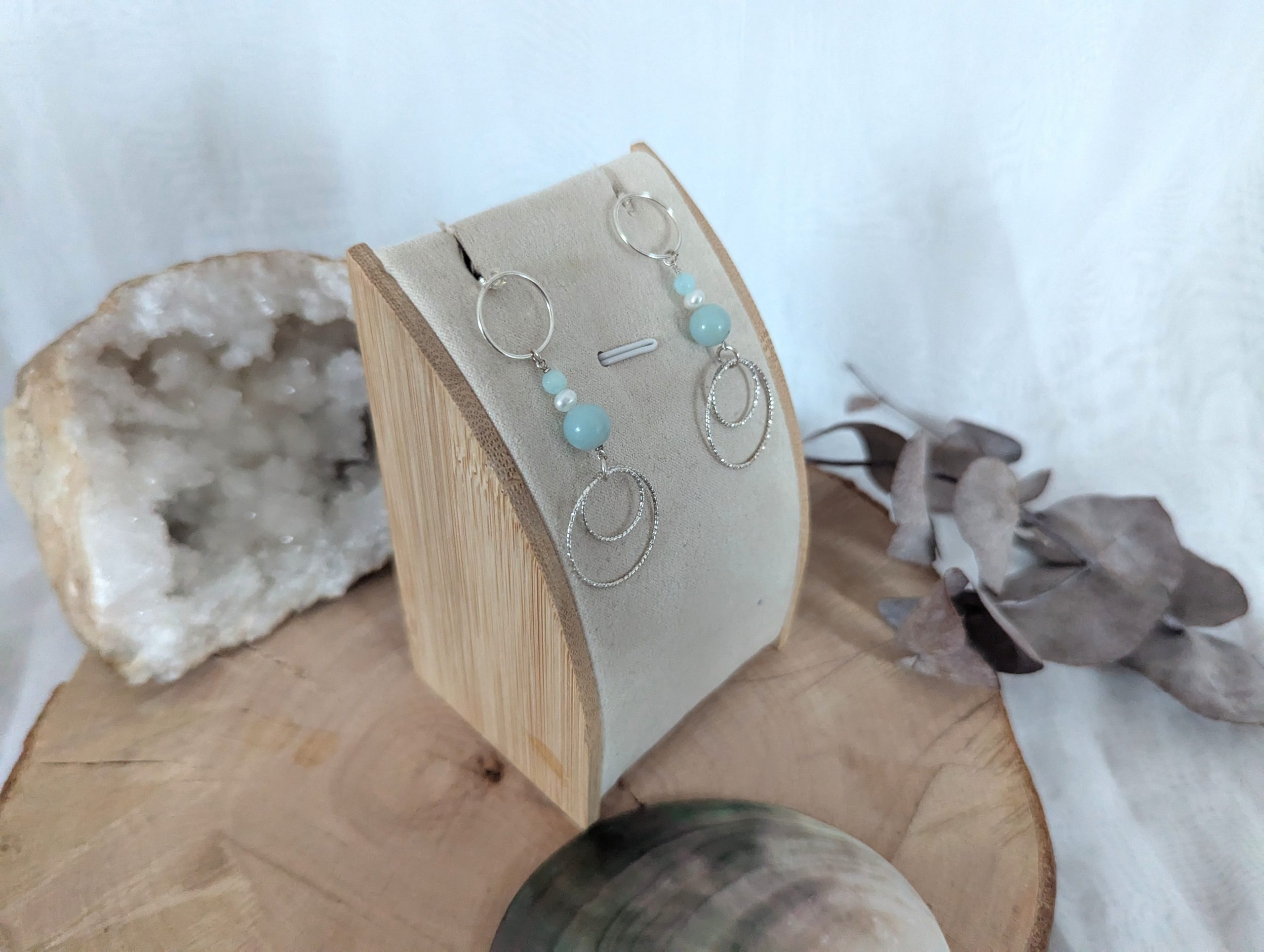 Description à venir Boucles en argent 925/1000e Amazonite 4 et 8 mm Perles 3 mm
