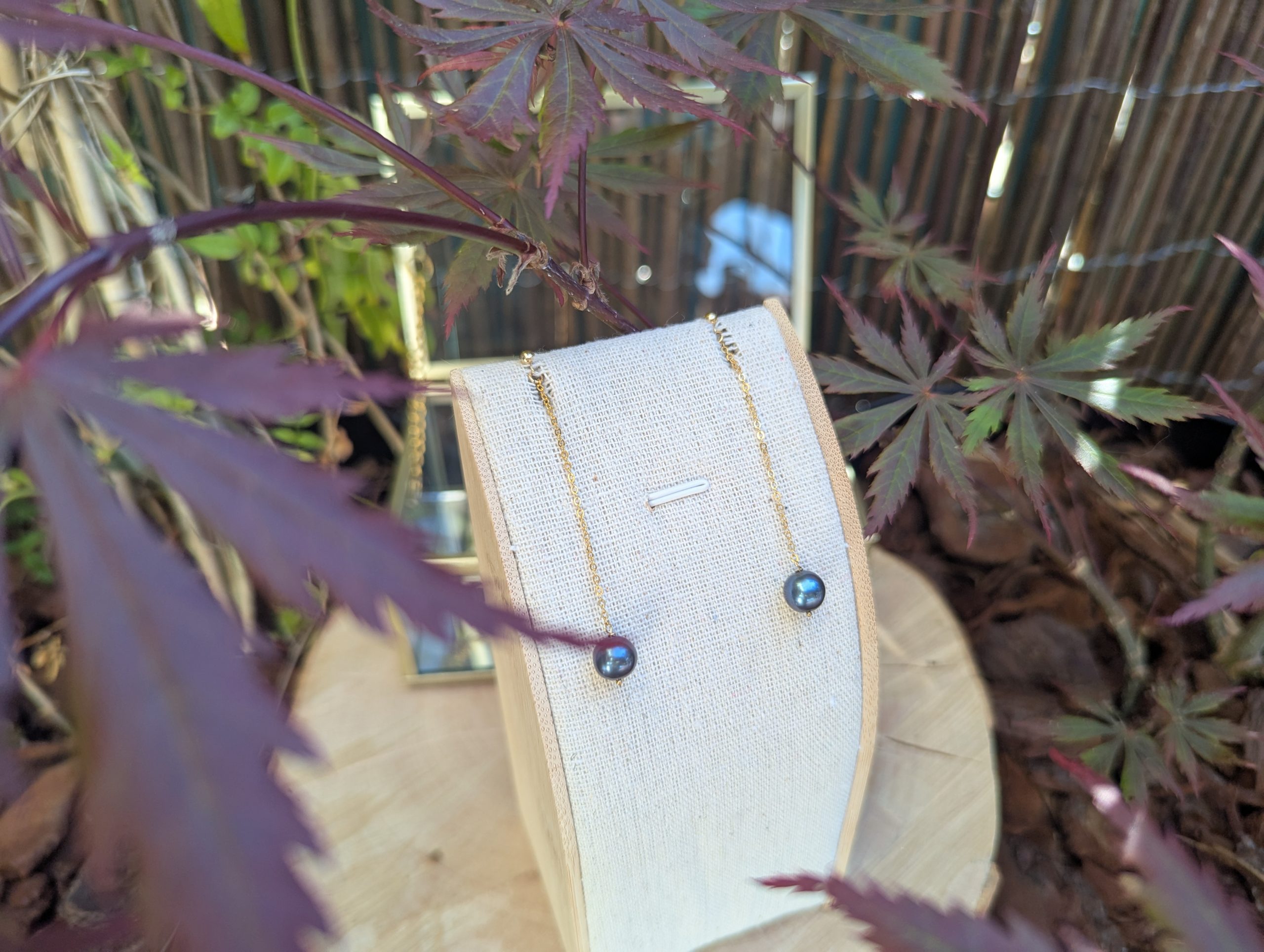 Description à venir Boucles boules pendantes en goldfilled 14K et perles de culture (mer de Chine) bleues