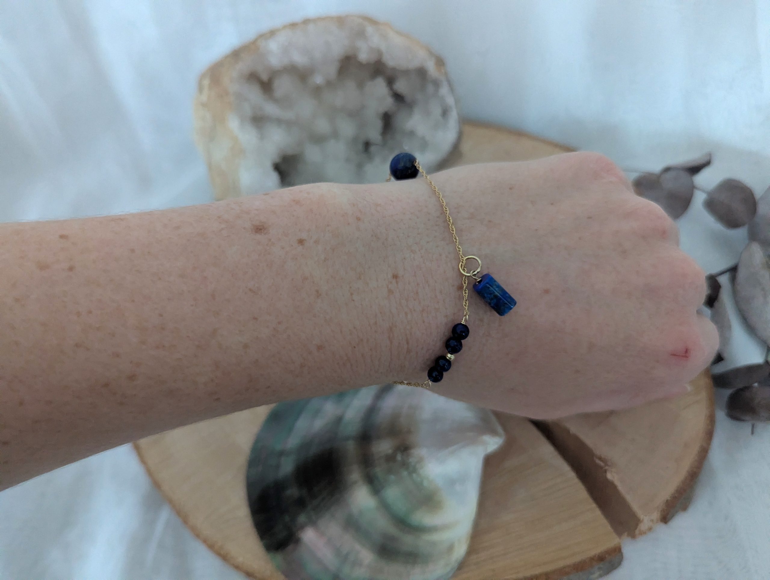 Description à venir Bracelet en goldfilled or 14K Lapis Lazulis : 8 mm, breloque et 4 mm