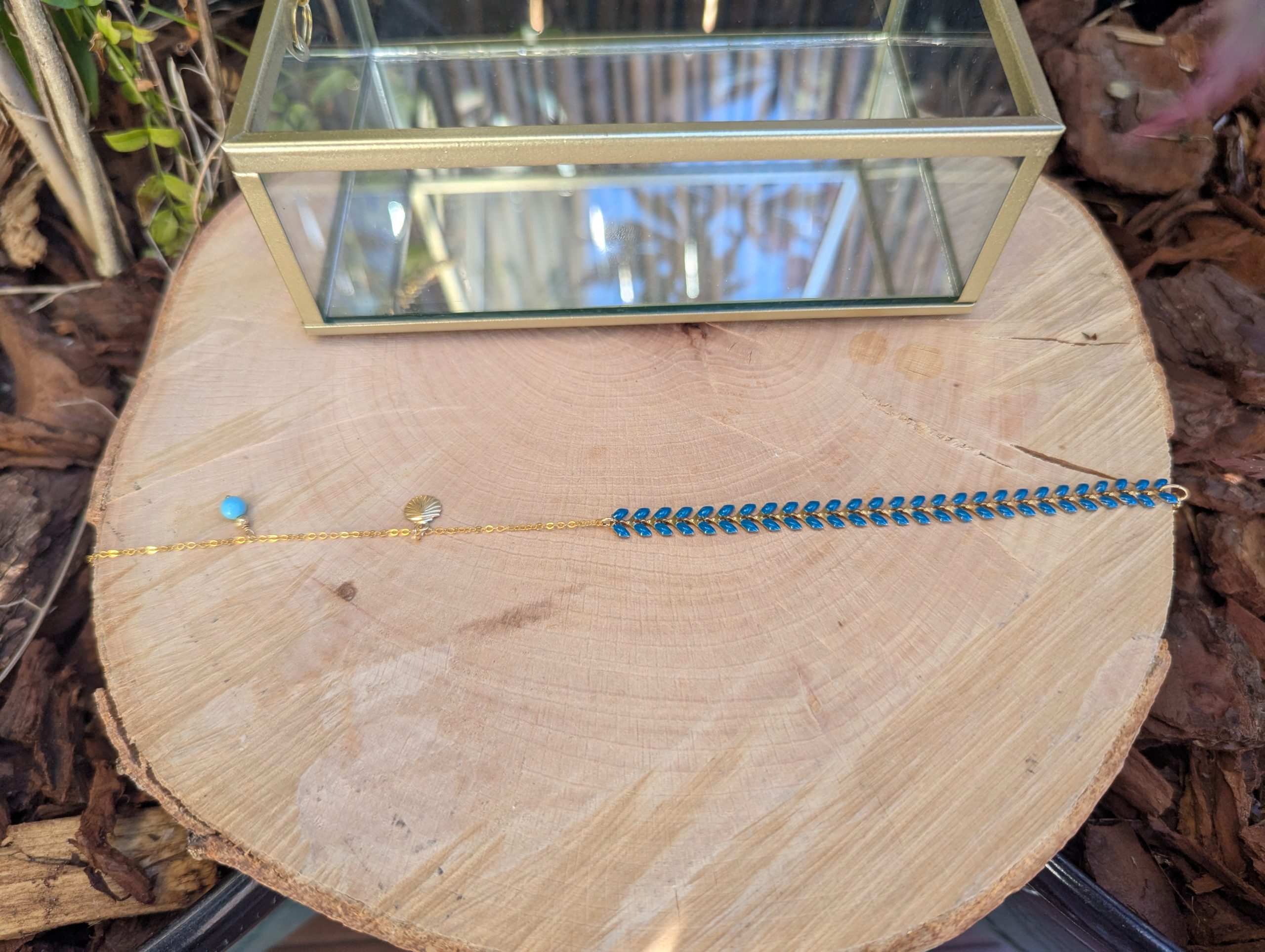 Chaine en goldfilled 14k, epis bleu et turquoise