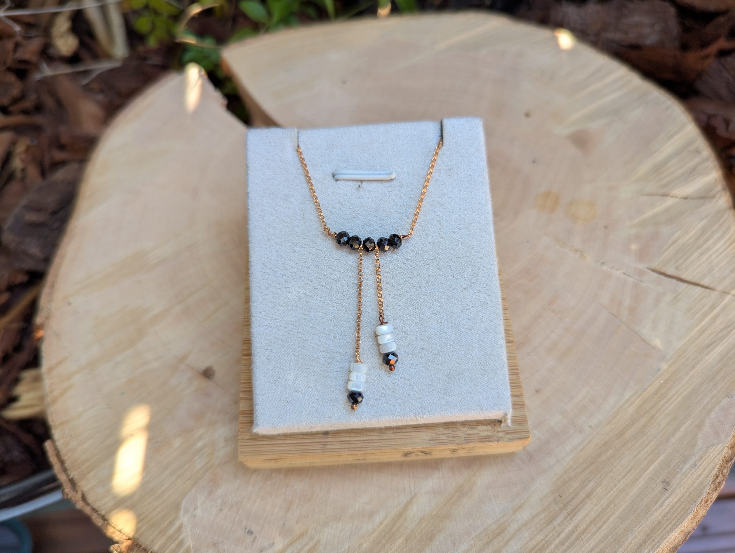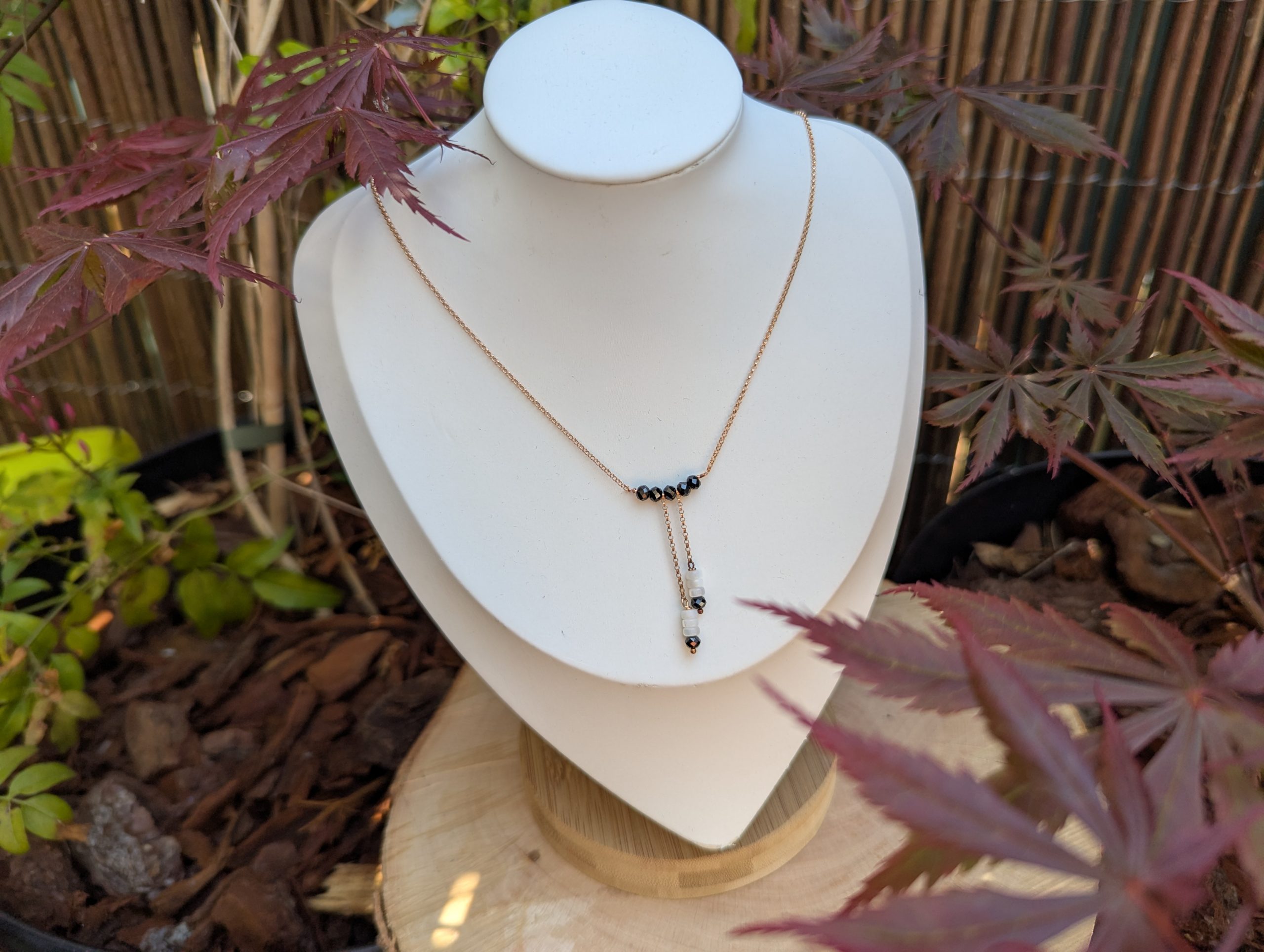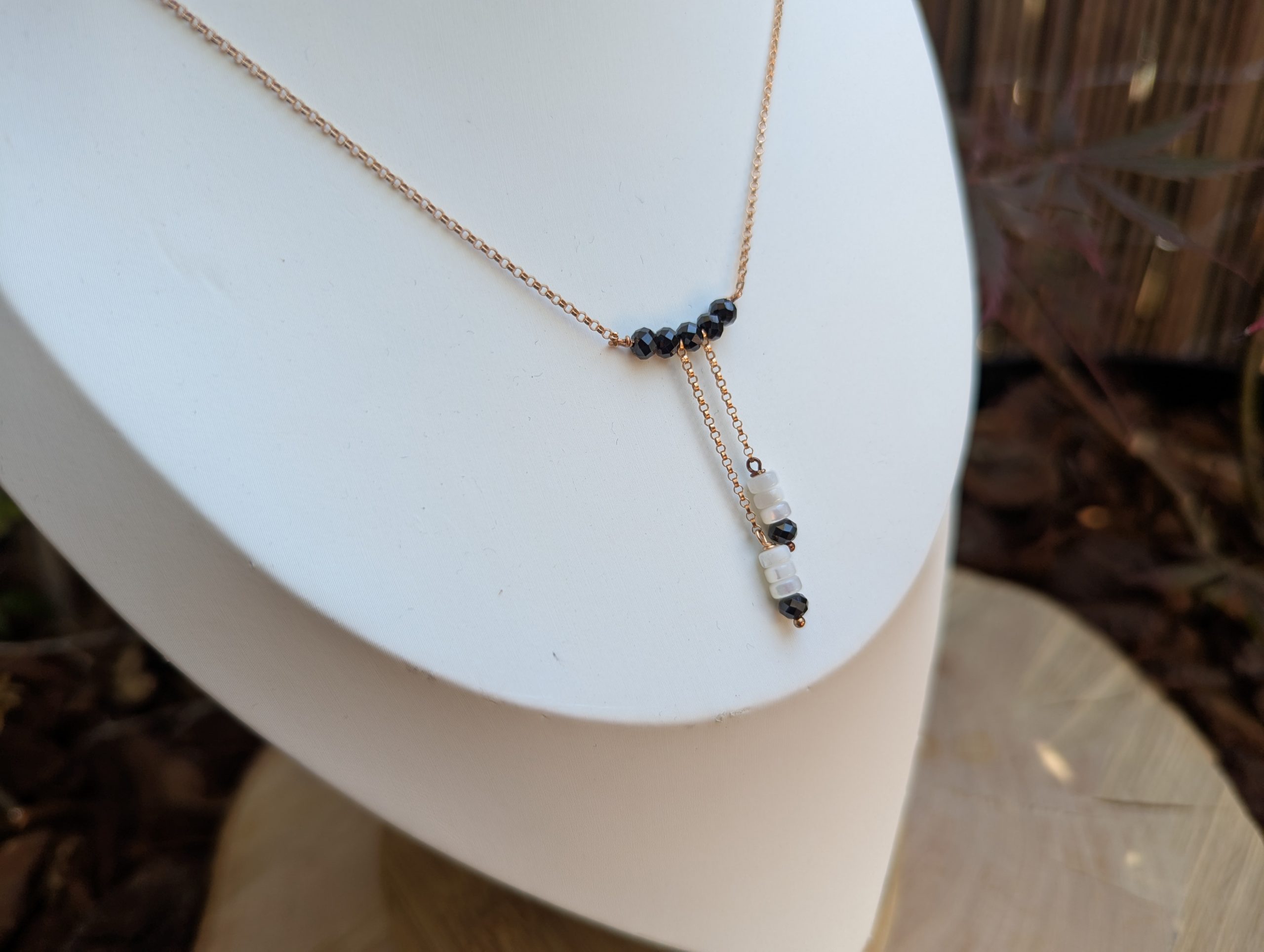 Collier en goldfilled 14K or rose, nacre et spinelle