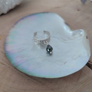 Mya c’est l’opposition de 2 couleurs de perles de Tahiti sur un anneau en argent réglable pour s’adapter au tour de doigt.